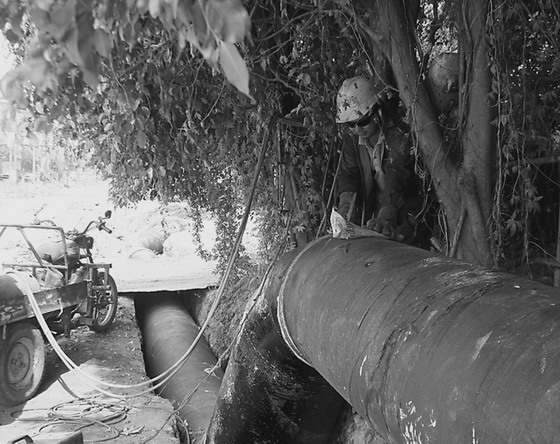廖工程師說,目前改造的給水管道從油城三路建設(shè)路口至油城一路茂化路口,全長6438米,全部采用球墨鑄鐵管取代原有的水泥管,其中800毫米口徑的球墨鑄鐵管有906米,600毫米口徑的有3773米,500毫米口徑的有1759米,基本沿油城路路邊鋪設(shè),大部分埋入地下,個別地方因受條件所限而露出地面。其中有11處地方要穿越道路之下,分別是建設(shè)路1處,環(huán)市西路1處,油城路9處。新管道埋于地下最深處有2米多,最淺處也有1米多,可有效保護(hù)管道的安全。而新管道口徑比原管道口徑要大得多,過水面積大大增加,從而有效保證正常供水,供水質(zhì)量得到保障。