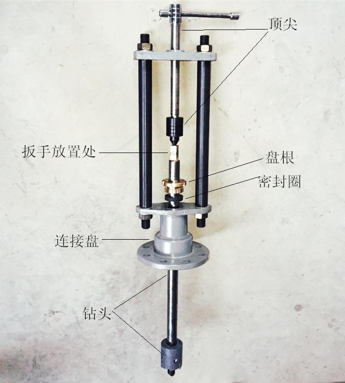3,開孔過程中,如突然阻力增大,頂尖可反向旋轉(zhuǎn)兩周,提起鉆桿后,再繼續(xù)搬動扳手。